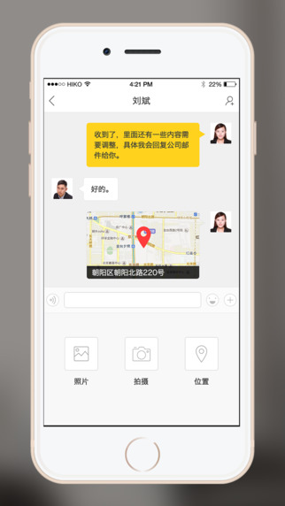 消息;IM实时沟通,单聊群聊都支持,还能分享图片、位置,让工作沟通变得更简单;