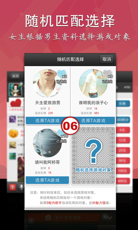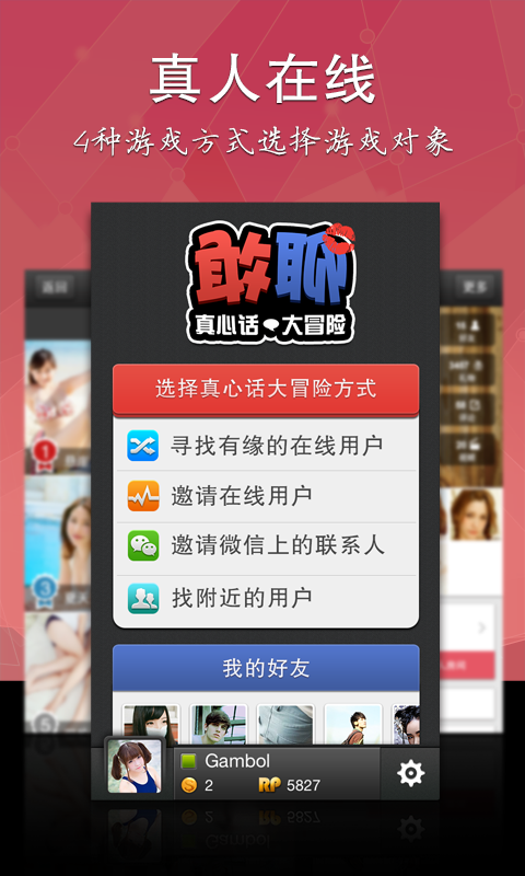 全球首款与真人互动的Truth Or Dare(真心话大冒险)社交游戏,你可以在这里找到同样爱好玩这个游戏的男男女女,好玩,刺激的问题,问你不敢问的,做你不敢做的,敢聊,就放马过来吧。。