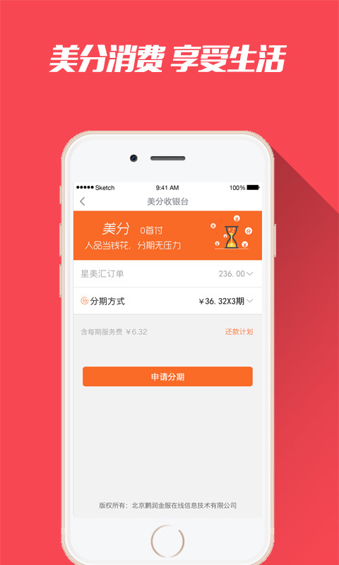 美分分期app是鹏润控股旗下旗下的一款消费分期产品,客户可享受先消费,后付款的服务。美分分期app利用互联网数据方式进行信用征信,用户提交个人信息后10分钟内完成授信,给出信用额度。用户在购买商品时,可用信用额度进行支付。产品购买成功后,客户定期对分期服务进行还款。美分支持线上线下分期消费,满足用户全场景消费需求。