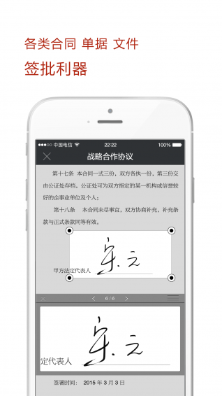 还在为签收单、收货单签字烦恼吗?出差在外,公司单据文件签字而发愁吗?不能与设计师面对面沟通修改意见而烦恼吗?好签,一个可以在任意文档上签字书写的APP;不用打印,好签支持几乎所有主流文档格式,您不仅可以像在纸张上一样随意书写签字,更可以将文件发送他人。让您的手机/Pad变为书写签字助手。我们只想做:最好用的文档签字书写工具~