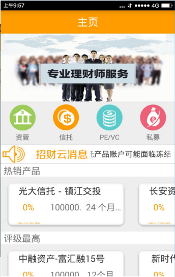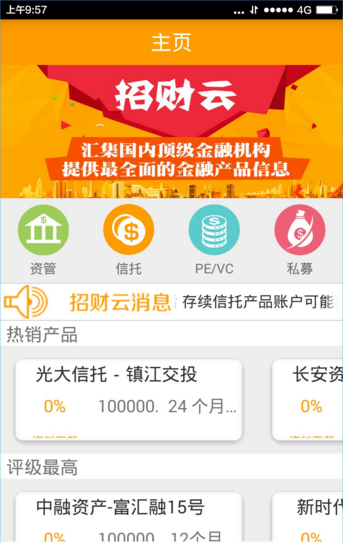 招财云是一款专业的手机金融理财应用,为你提供各类投资理财服务,专业的风控团队,可信赖的实时资讯,让专业的人来做专业的事,帮助你的资产稳固增值。