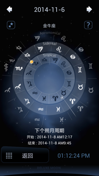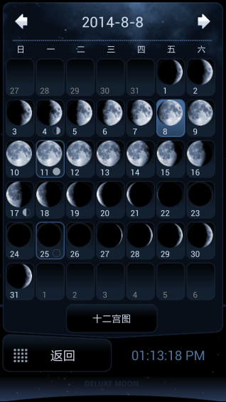 星座运势,月相百科。一款华丽的月球状态动态显示软件。界面很漂亮,可以显示每天月相图、分时图、远地点、近地点、月亮盈亏等,月相百科支持三种定位查看月相方式:基站定位、GPS、及手动设置位置。可以查看任意一天的月相。