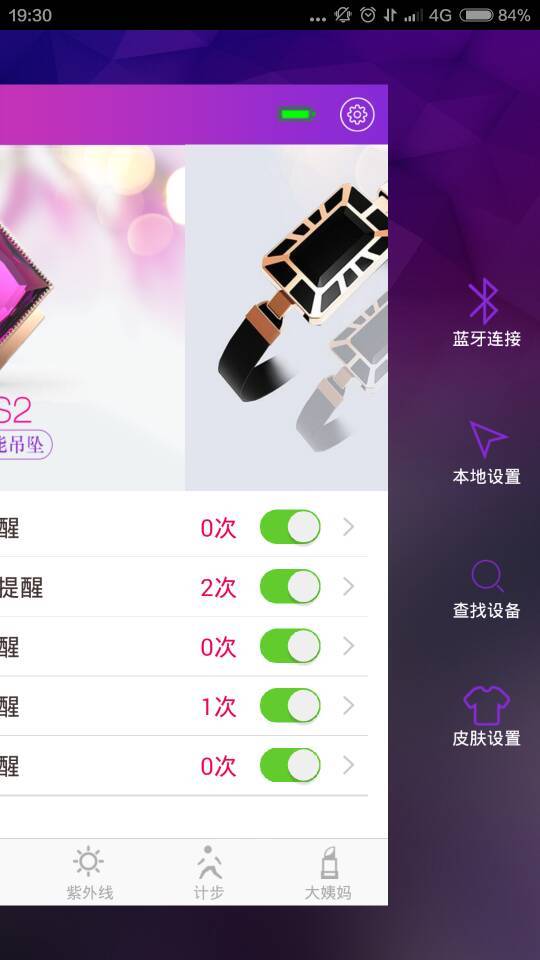 Smart Girl app应用软件,配置有各种生活提醒和运动健康等功能,具体功能有:来电提醒、久坐提醒、喝水提醒、起床提醒、备忘录提醒、双向防丢、查找手机、女性大姨妈管理、运动计步、时钟......等功能的应用软件。