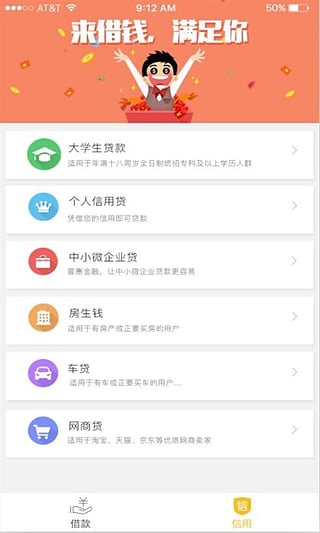 1、丰富贷款类型:大学生贷款、个人信用贷款、企业贷款、房贷款、车贷款、网商贷款,十几种贷款类型满足借款人的贷款需求;