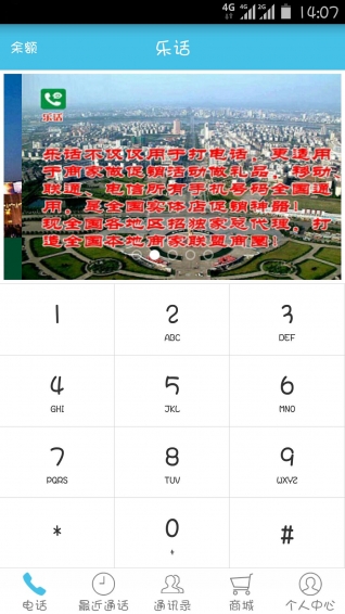 “乐话”是支持移动、联通、电信所有手机号码充值全国打电话不扣流量的手机APP通话软件,接听显示手机号码,也是目前全国技术、服务、通话音质很好的,更是帮助传统实体店、网店、微店带动营业额的促销神器!