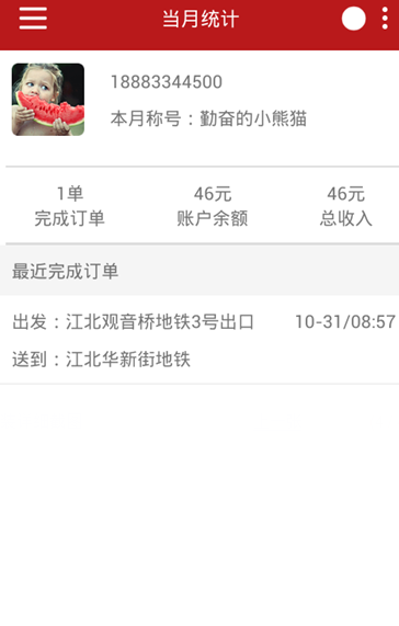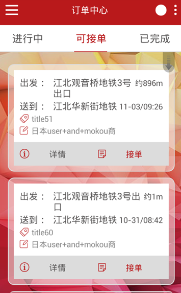2.订单中心,进行中,可接订单以及已经完成的订单一目了然