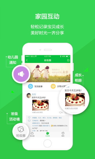 2、班级圈:班级圈子,实时共享,图文结合,记录成长;