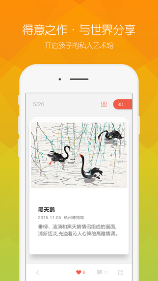 艺术馆】装在口袋里的儿童私人3D艺术馆,360度全景呈现孩子的艺术作品,从作品集中挑选得意之作,与世界分享吧。