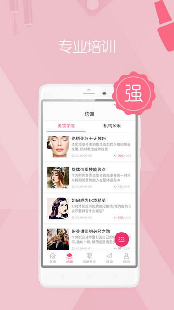培训:与全国多家知名机构合作,倾力打造专业化妆课程,服务于业界达人,推进美妆行业发展,“助梦星计划”帮助美妆师成就美丽创业梦。