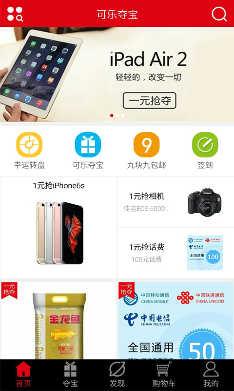 可乐夺宝是一种新型的网购模式,只需一元就有可能买到iPhone、iPad、电脑、家电,或提供超划算的、优质的、精选的网购优惠信息。专业的编辑甄选的9块9包邮商品更是件件超值,引发用户疯狂抢购!