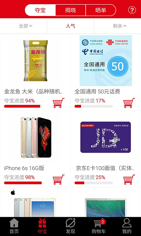可乐夺宝app是一款电商购物应用,可乐夺宝app为用户提供当前最火爆的一元夺宝玩法,让用户只花一元钱就有可能买到iPhone、电脑等超值商品,体验最实惠的购物玩法。