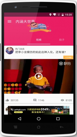 内涵大世界app是专为笑话查看打造的应用,能随时查看各种优质的段子,各种爆笑视频,支持在线评论各种段子,更支持各种逗逼视频查看,是您打发业余时间的好帮手。