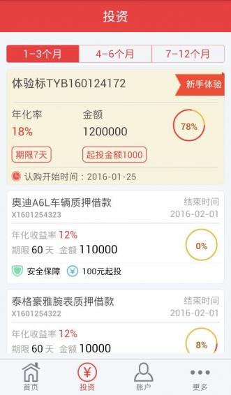 顺时针金融app是一款专业的典当应用,能随时查看各种典当质押,100%到期回购,100元起投,和多家专业典当行和金融公司合作,是您典当的首选。