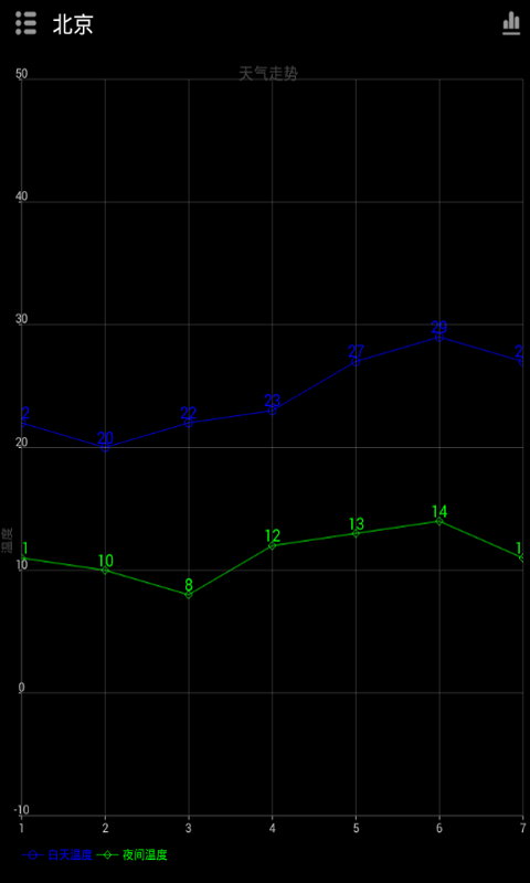天气小助手以简介的画面向使用者及时准确的获得当日最新的实时温度信息,空气质量和气候条件,更可以提前获得未来一周的天气情况,配合图表可以更加方便和直观的了解未来七天的天气变化走势
