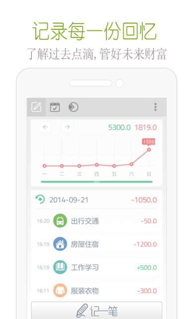 1.记账、通过简单的操作即可记录账单