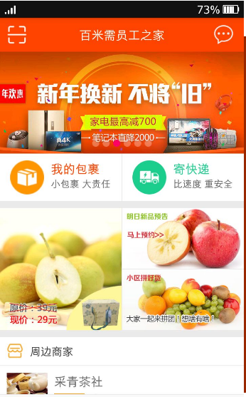 2、主要面向用户提供包裹代收代寄、小区拼好货、小区二手信息;