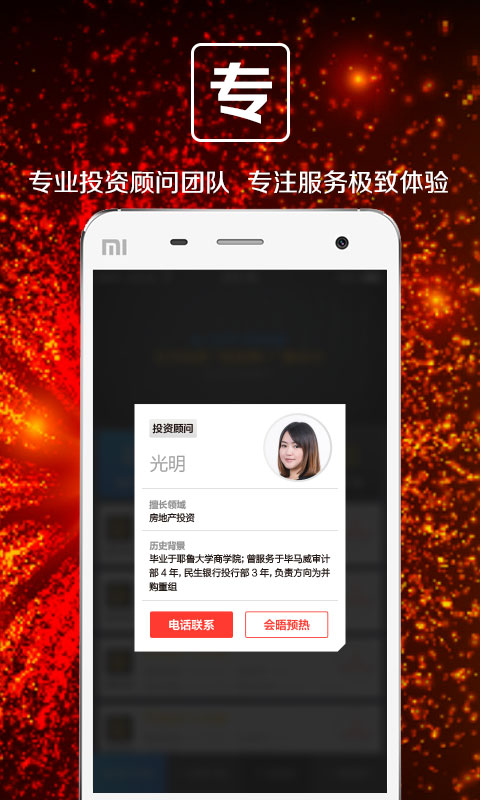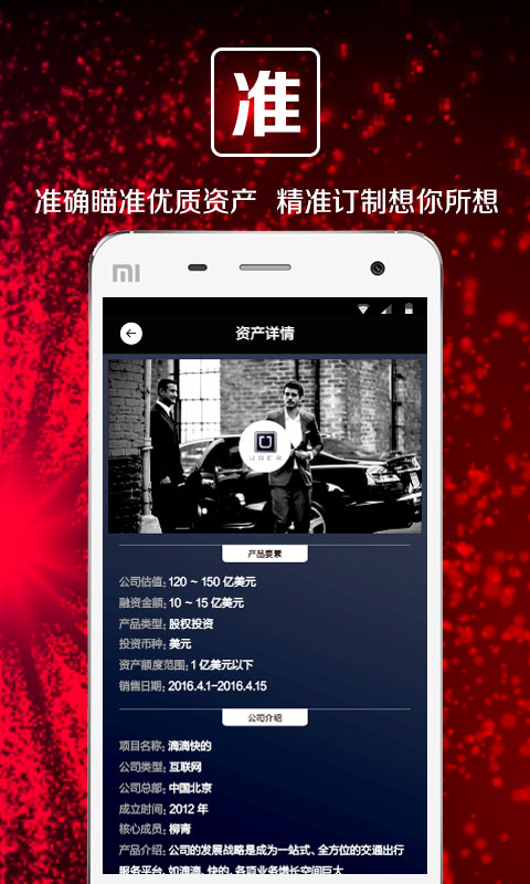 3,通过App项目约见、会议安排、私人定制等功能可高效对接资金资产双方需求,带来卓越的智能一站式体验。
