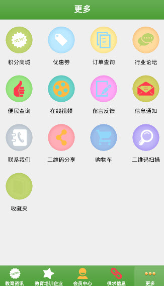【积分商城】:本应用提供相关各种培训分类,方便客户查询购买。
