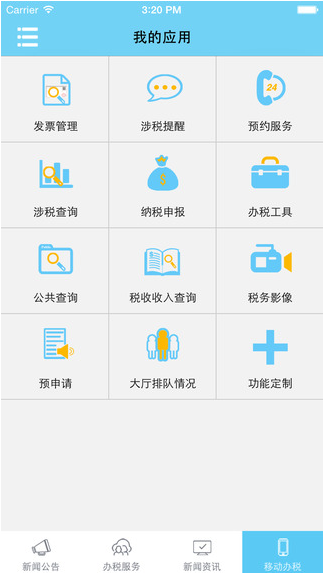 税局移动办税是山东神码中税信息科技有限公司开发的一款山东省国家税务局移动税务平台app,基本的一些功能都有,主要用来预约国税局服务!