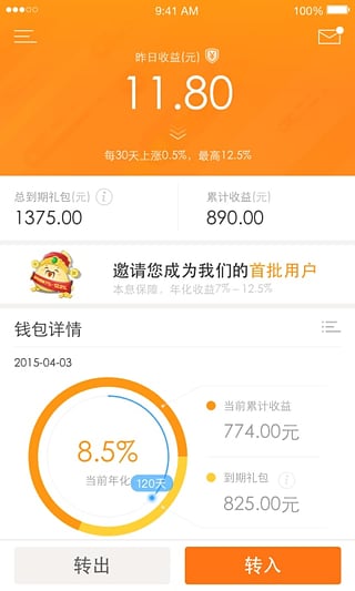 资金存满360天,平台发放专享到期礼包,全年收益补足至12.5%