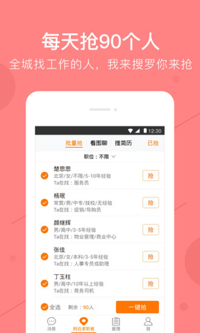 4.一键抢人才——每天90个优秀求职者任你抢,手快有,手慢他就被其他老板抢走啦!