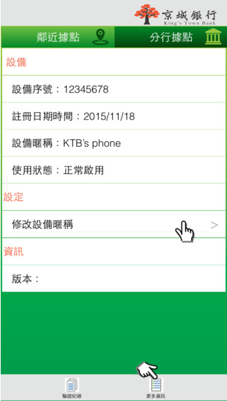 註冊行動設備前,請先於本行全球資訊網京城行動守門員設備認證專區申請。