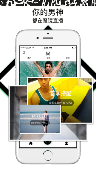 任何男生,只要你愿意显示你的魅力,或者健身、游泳、绘画、外语、厨艺……等等,都可以加入魔镜直播,成为别人的男神!