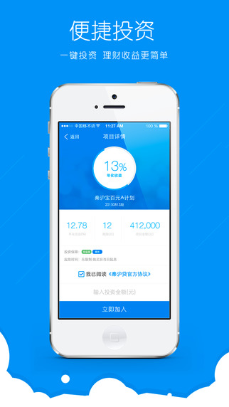 最快捷的操作体验,弹指一瞬间,财富滚滚来!比网站更加便捷,实现随时随地轻松理财。