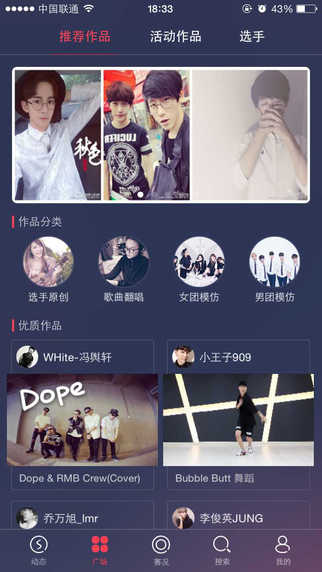 【你热情满满?才华横溢?颜好任性?】 动一动手指轻松上传作品,千万用户粉丝为你评价,专业乐评人为你打分,更有海内外知名经纪公司高度关注,在这里,你,随时都有机会get通往梦想的入场券!