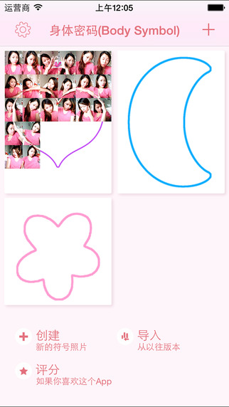 它帮助你使用身体(手臂 手 腿 头 ...)来非常容易的创作拼接的符号图片,例如心型、星星、Kiss等。你也来用这个App来自拍一套心形照片吧