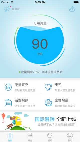 全家人的移动管家,随时随地关注流量和话费