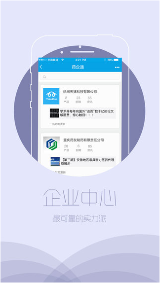 医药新势力app是提供给医药企业及代理商之间便捷互动交流的平台。在这里,企业均经过实名认证,放心可靠,可以直接免费发布代理招商信息,可以精确到全国每个县级医院的代理商,而代理商用户则可以很方便的寻找和浏览代理信息,并在线即时互动交流,让彼此合作都更方便高效。