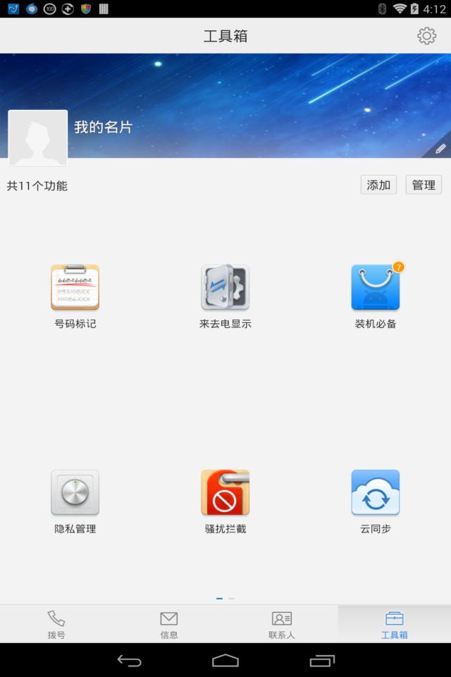 来电通iPhone版《来电通》是智能手机应用软件,功能齐全,扩展手机功能,可实现来电号码归属地,来电号码类型,可实现大头贴,可礼貌拒绝指定号码并短信自动回复。保护您的私有空间。可进行骚扰电话与短信的拦截,流量监控,扣费短信扫描等。