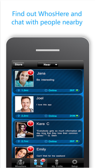 4、拥有超过500万用户的* *,WhosHere 是理想的结交新朋友、约会、网络、或只是聊天,交换图片,新的和有趣的人,以及世界各地的附近;