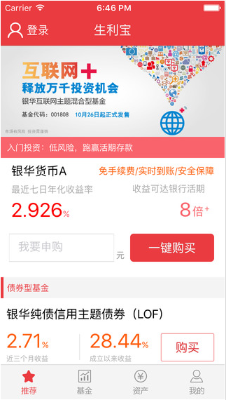 银华生利宝app是由银华基金推出的一款手机打理基金的移动理财软件。银华基金成立于2001年5月,成立14年以来,凭借诚信、规范、稳健、务实的运作风格,逐步发展为一个具有大资金管理能力的综合型资产管理公司。截至2015年6月,公募资产管理规模超1300亿元。