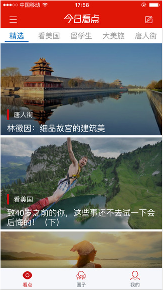 今日看点(中美交流)app,聚焦中美为文化交流,为用户提供准确及时,丰富多彩的教育,旅游等相关信息服务,希望对你有用,快来飞翔下载吧