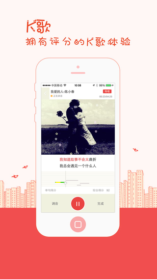 * 专业的手机唱歌软件,除了手机K歌,自带精确的评分和音调引导,练歌神器让你秒变KTV歌神。