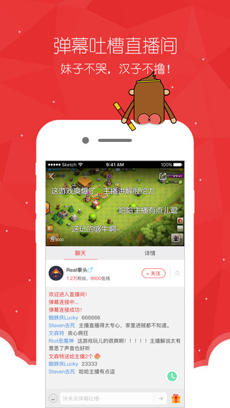 3.弹幕吐槽直播间,妹子不哭,汉子不撸!