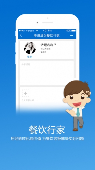 餐饮咖app是一款餐饮人员拓展人脉的利器。你可以之这里了解最新的行业动态,也可以在这里认识更多的行业大佬,还有更多的同行业小伙伴,拥有更多优质人脉圈。