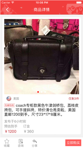 全球奥特莱斯扫货专用APP,鞋服箱包、美妆个护、母婴用品等商品种类丰富,应有尽有!100%正品保证,海外直邮到家!让你足不出户,滑动指尖,轻松逛遍全球奥特莱斯卖场!