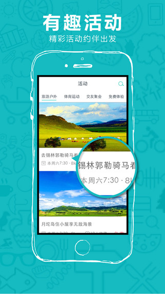 - 个性出行:多维度筛选功能,满足用户的个性需求,亲子公司情侣任意组合,骑马漂流温泉爬山自由变化;