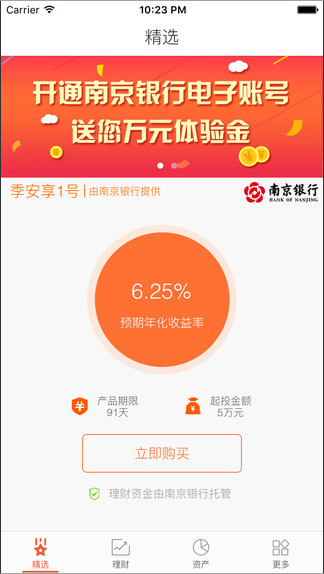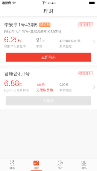 多种类理财产品任您挑选,滑动手指间让您随时随地查看产品详情和收益情况。