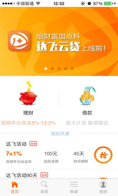 达飞云贷官网苹果版app:为您提供网贷和理财服务,是中国互联网环境下非常成熟的一个借贷与金融理财的平台。致力于向用户提供最方便快捷的借贷服务。用户可以用借贷的钱投资理财产品,用别人的钱挣钱,非常机智的选择。