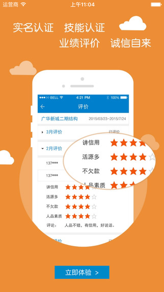 队长、班组长每来一新活,就得打几天几夜的电话,找人干活。找人还能怎么解决? -第一步:把【要招什么工种的工人】需求发到匠才汇平台; -第二步:工人分分钟来报名,你尽管挑人! -第三步:开工! 找人,就是这么简单!