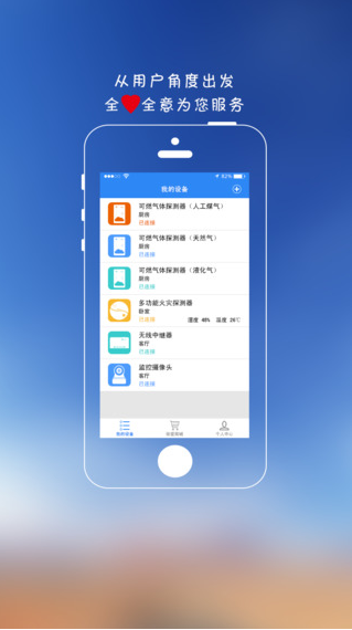1、设备在线管理,将家庭智能消防、安防设备添加到App,进行统一管理。