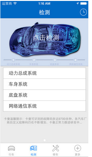 卡曼app可识别多种故障,并给出故障的详细说明,检测过程中,语音播报更显人性化。