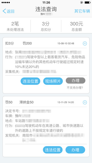 车辆交通违法办理、年审信息