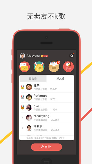 [好友打擂]---K歌欢唱比分争夺天下,兴趣社交让老友更亲密!