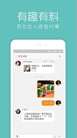 兴趣社群:国际范儿的家庭社交平台,这里聚集了众多才华横溢的父母达人,大家有范儿又好玩,互通海量教育干货。在这里你可以发挥自己的特长和兴趣,现已有超过100位家庭达人进驻。