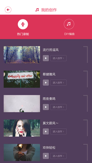 无乐不作app是一款音乐创作平台,在此你可以将自己的音乐灵感记录下来,通过自己的创作来进行作曲,如果你只是一名业余爱好者,则可以利用更加简单的方法来进行,将歌曲碎片化,无需懂乐器,无需懂编曲,只要点击手机界面,就能作出自己的专属音乐。